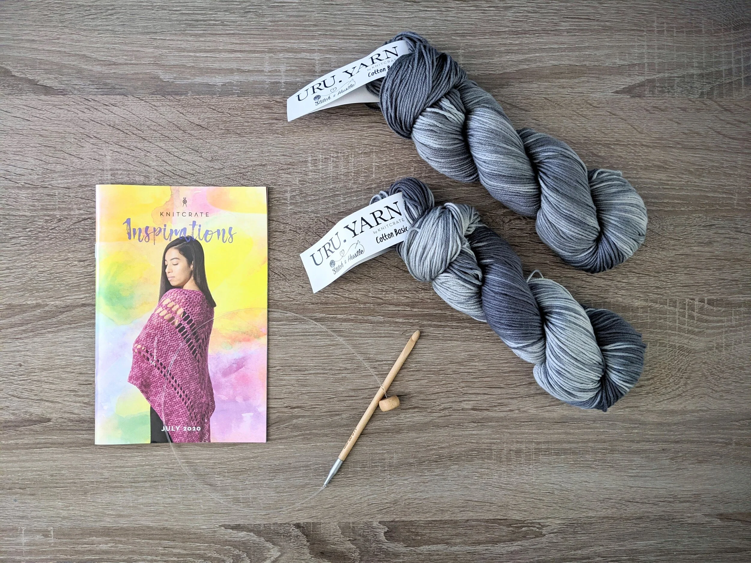 This month KnitCrate worked in collaboration with Michele Costa of Stitch & Hustle to design both the yarn and the colors. I received two skeins of URU.YARN Cotton Basic in the colorway Pavement. This yarn is 100% Unmercerized Organic Pima Cotton in a DK weight, with each skein at 275 yards (550 yards total).
