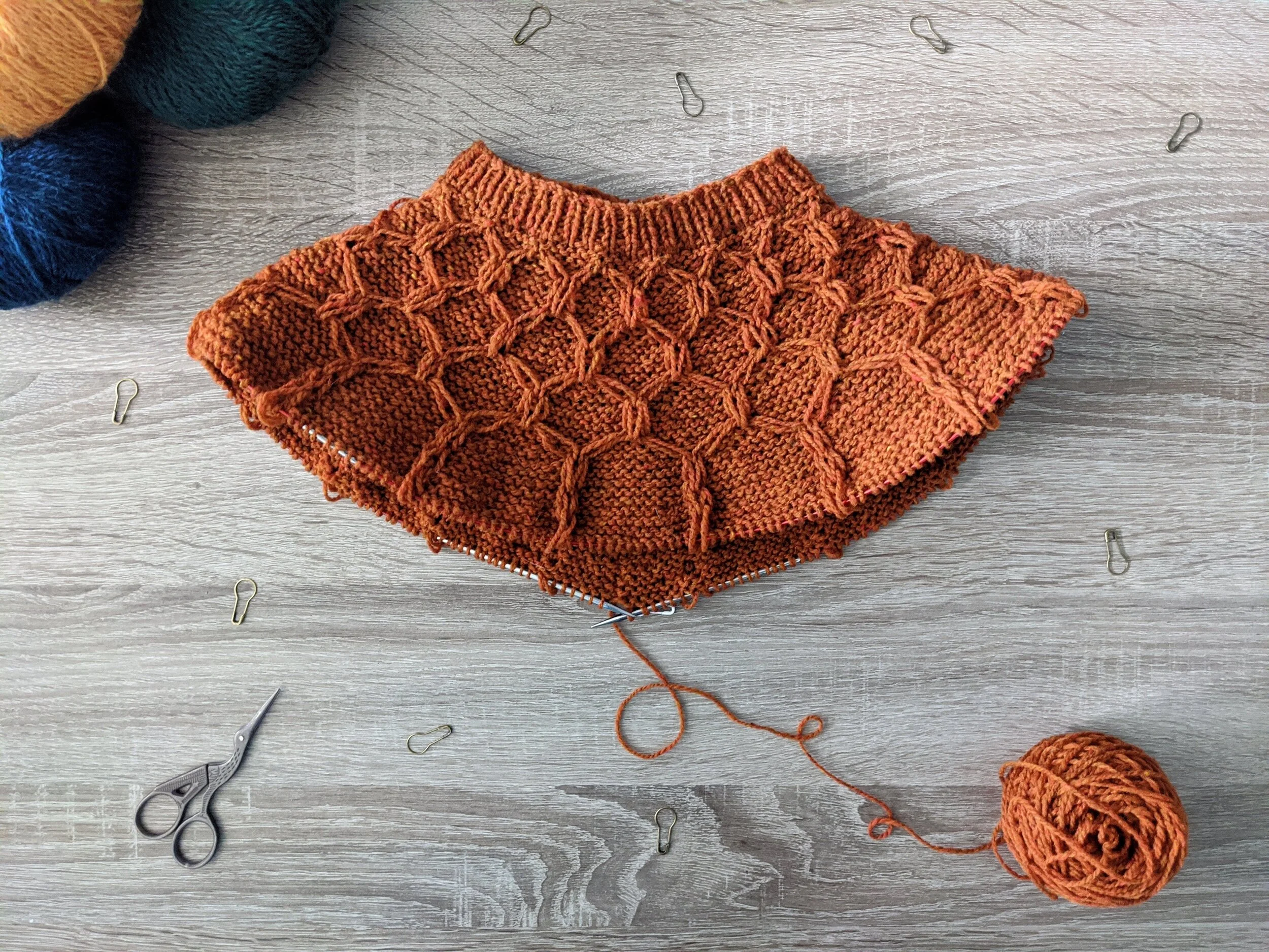 Starting the pattern was actually pretty fun. It uses a series of wrapped stitches to create the honeycomb effect, and watching it come to life is really exciting. I was surprised with how quickly I knit through the top portion of the sweater, and in no time the sweater really started to come to life.