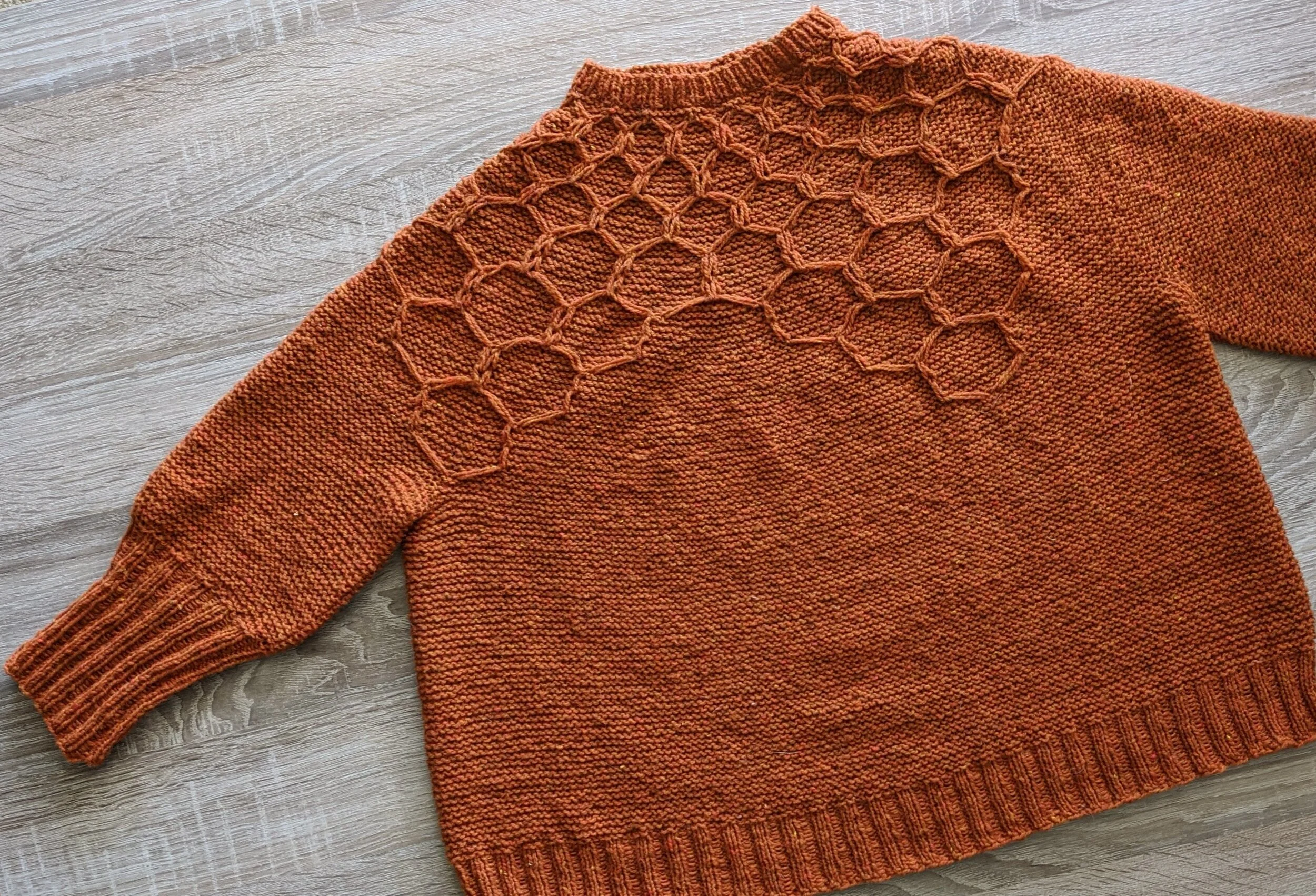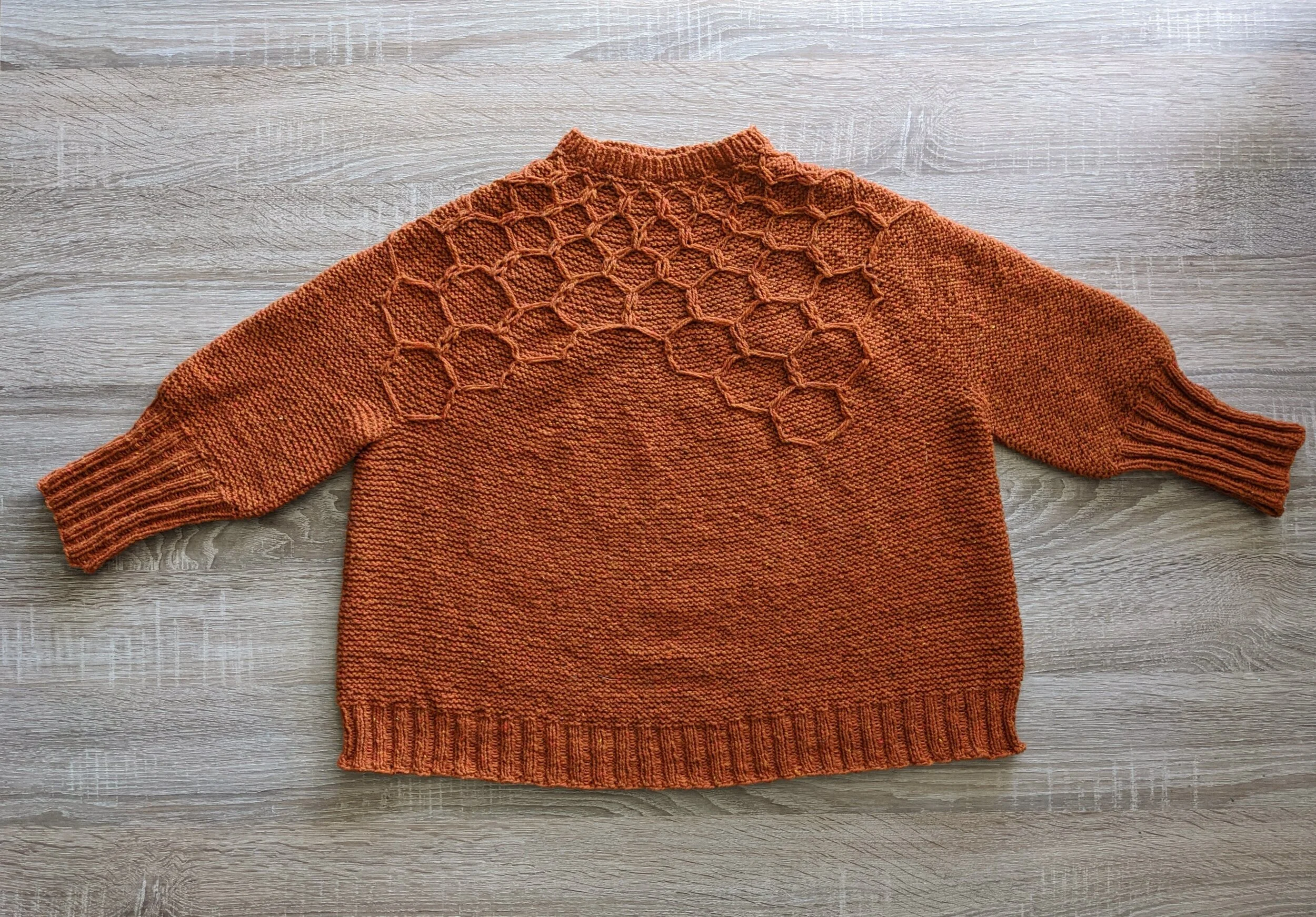 The pattern: Honestly, I’m back and forth. I LOVE the pattern itself - the honeycomb pattern is so beautiful and looks so great against the garter stitch. It’s so clever. I just wish it fit a little better. The sizing is just so weird, at least for my body type. Definitely make sure you are ok with a SUPER boxy sweater, and if not - MODIFY! Don’t be like me. 😅